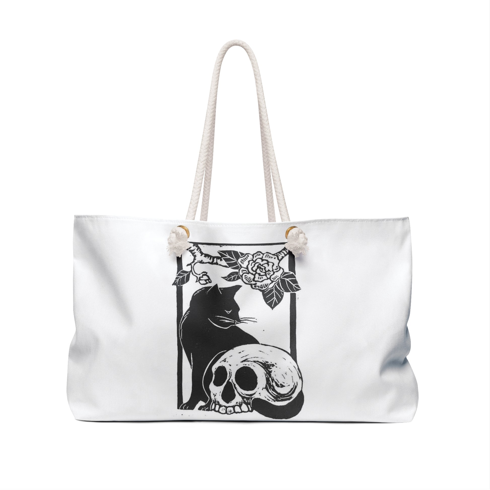 Occult Cat Skull Tote Bag – Memento Mori Gothic Aesthetic
